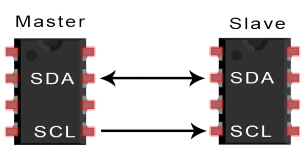 I2C adalah protokol komunikasi serial sinkron, artinya dia menggunakan sinyal clock untuk sinkronasi saat transfer data, I2C biasa digunakan pada perangkat display seperti LCD, OLED juga digunakan pada modul sensor seperi RTC dan Akselerometer. Komunikasi I2C hanya memakai 2 kabel yaitu SDA (Serial data) untuk transaksi data dan SCL (Serial Clock) adalah jalur sinyal clock untuk sinkronasi transfer data, data dikirim dalam bentuk paket data, dimana jumlah data yang dikirimkan terbatas dalam satu kali transfer, juga memerlukan bit tambahan sebagai penanda awal dan akhir paket data.